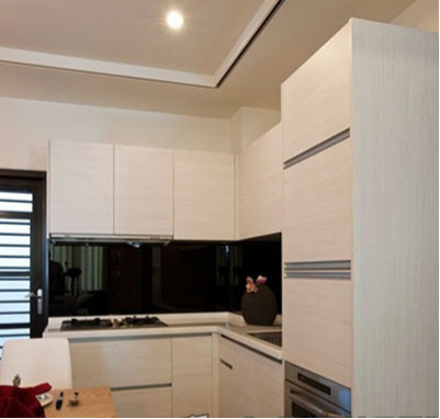 更具房型的定制橱柜,能将原本浪费的空间充分的利用起来,厨房被移到了进门的入口出,与过道共用的空间,能间房屋最大的利用,将小户型的有线空间变成无限的可能。
